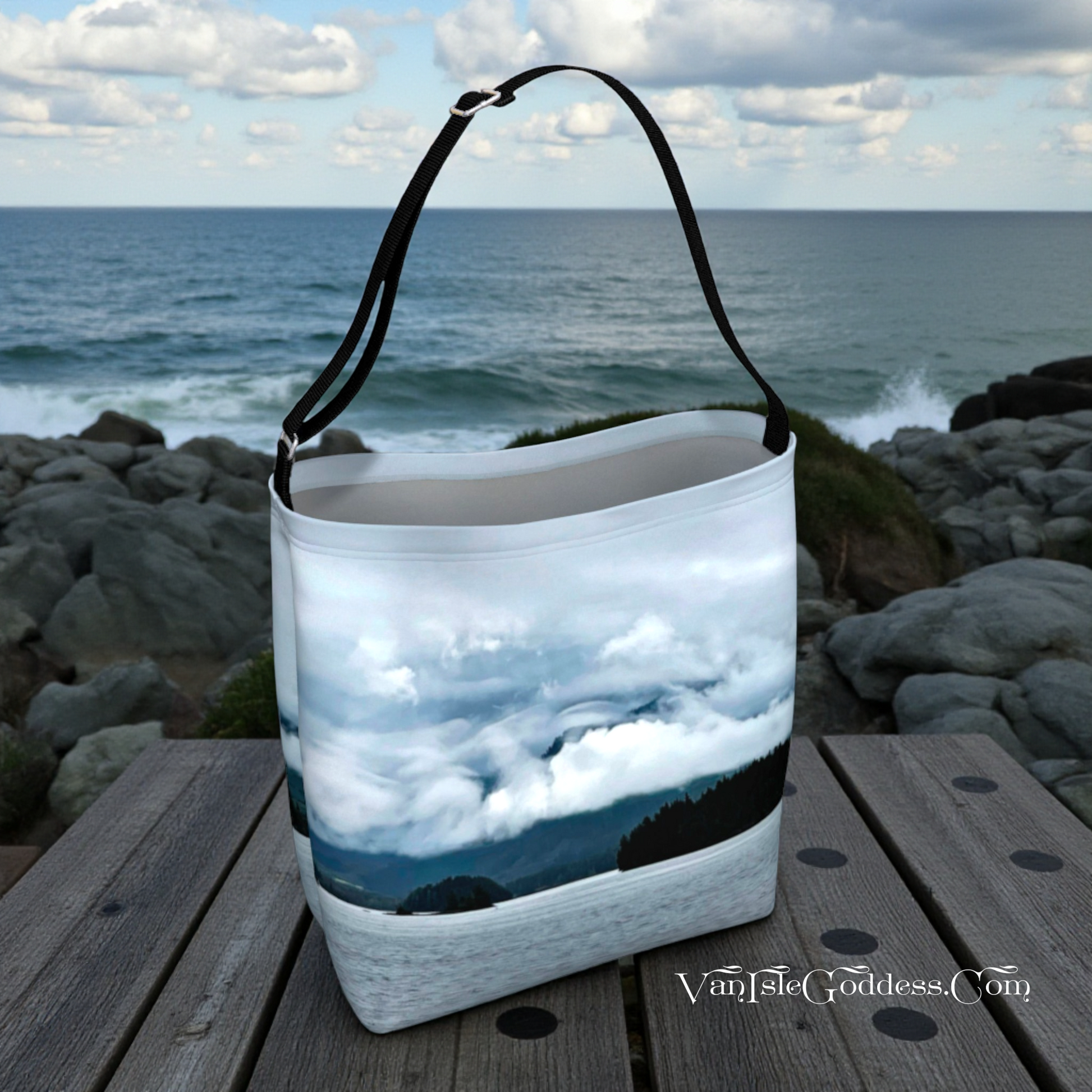 Introducing the Alberni Inlet Neoprene Day Tote: A Scenic Fusion of Coastal Landscape and Practicality
