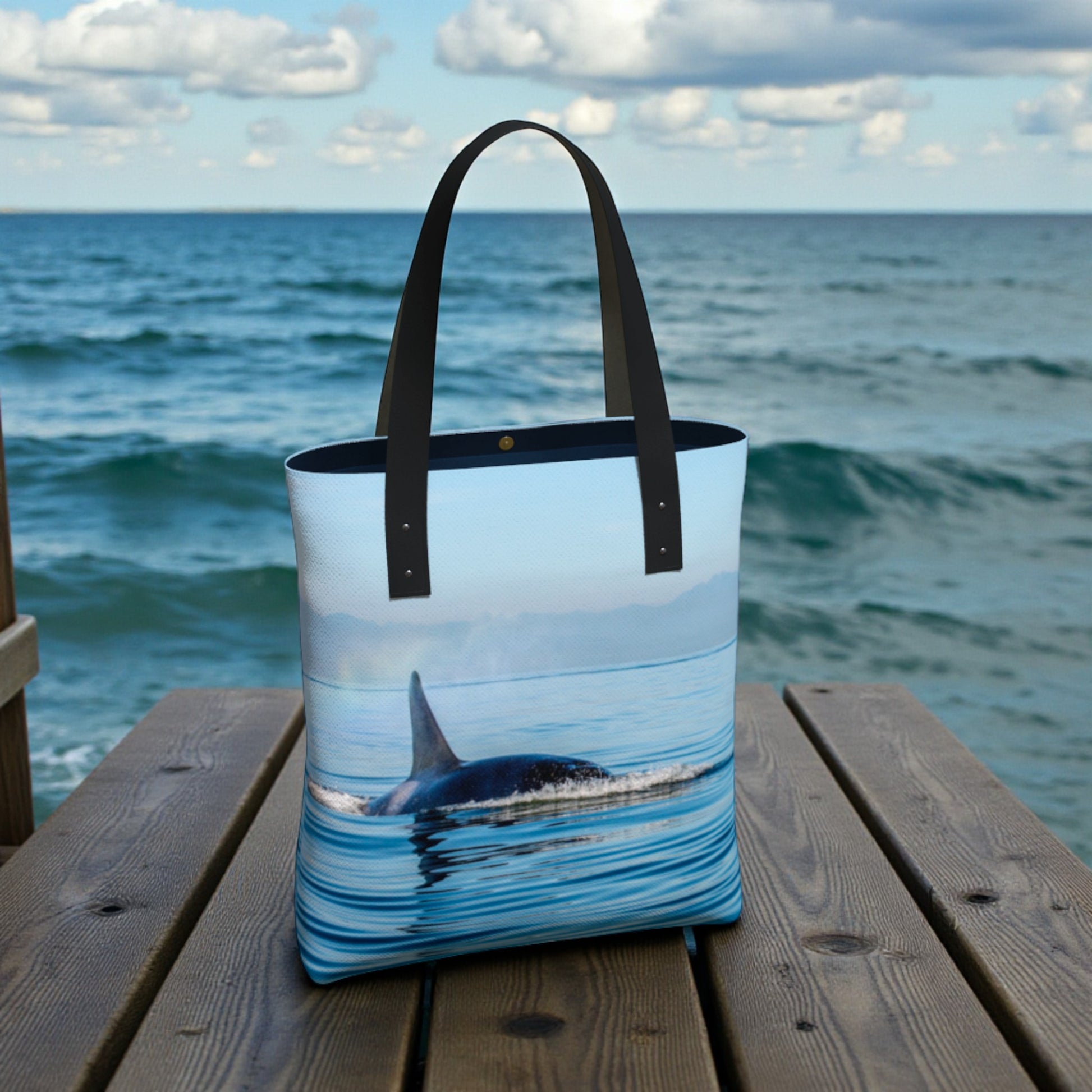 The Orca Spray Urban Tote Bag pairs striking coastal style with everyday functionality. Designed with a fully lined interior, multiple pockets, and a structured silhouette, this tote keeps your essentials organized while offering the durability you can rely on.