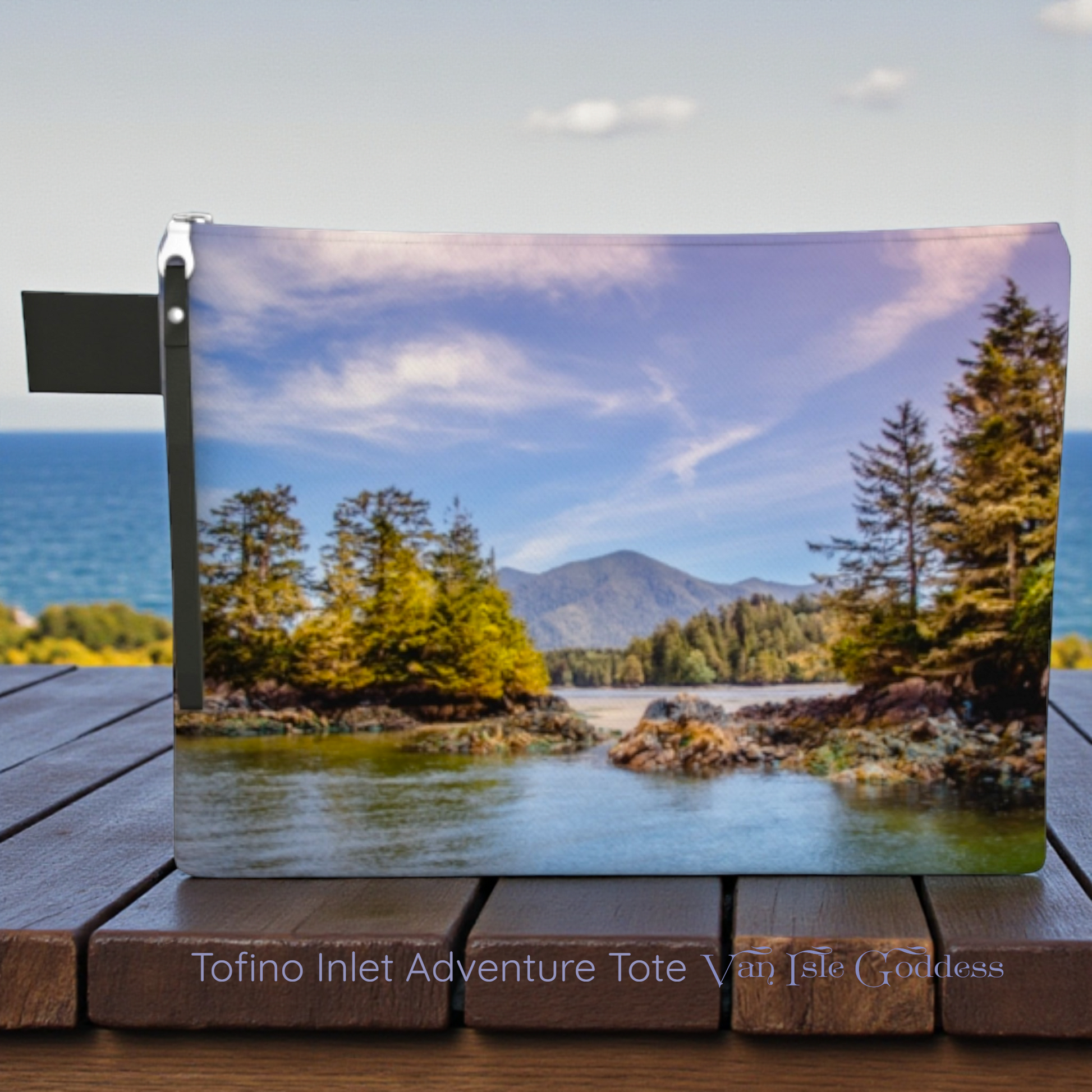 Meet the Tofino Inlet Adventure Tote—a tough, ocean-inspired zipper pouch built for days on the water and life on the move. Designed to handle everything from art supplies and keepsakes to travel gear, camera essentials, cords, chargers, and lightweight protection for your tablet, iPad, or laptop.