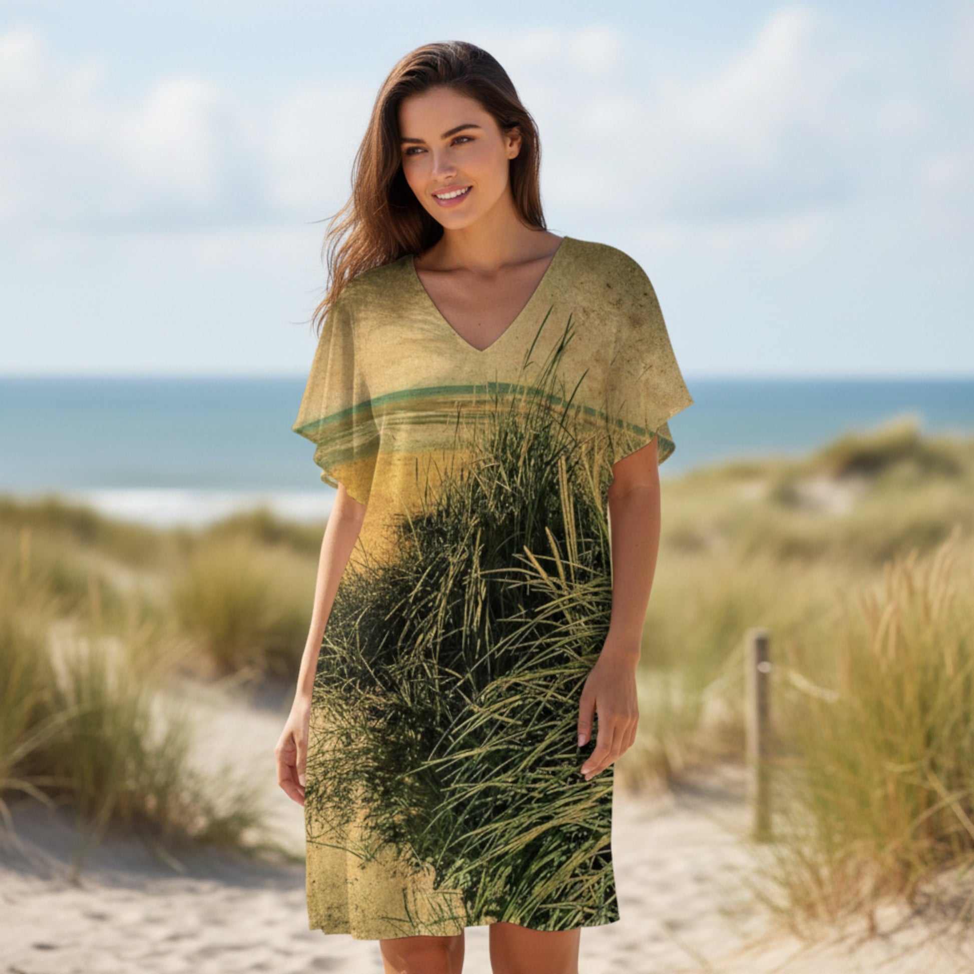 This versatile Vintage Beach Above the Knee beach dress is a must-have addition to your wardrobe, offering endless styling possibilities for every season. After your yoga class, layer it over a tank top and leggings for a chic, relaxed look perfect for grabbing a smoothie or running errands. In the summer, add a touch of flair by wearing it over your favourite ensemble, transforming a simple outfit into a stylish statement. As the weather cools in the fall, pair it with a long-sleeve top and leggings for a cozy yet fashionable look.