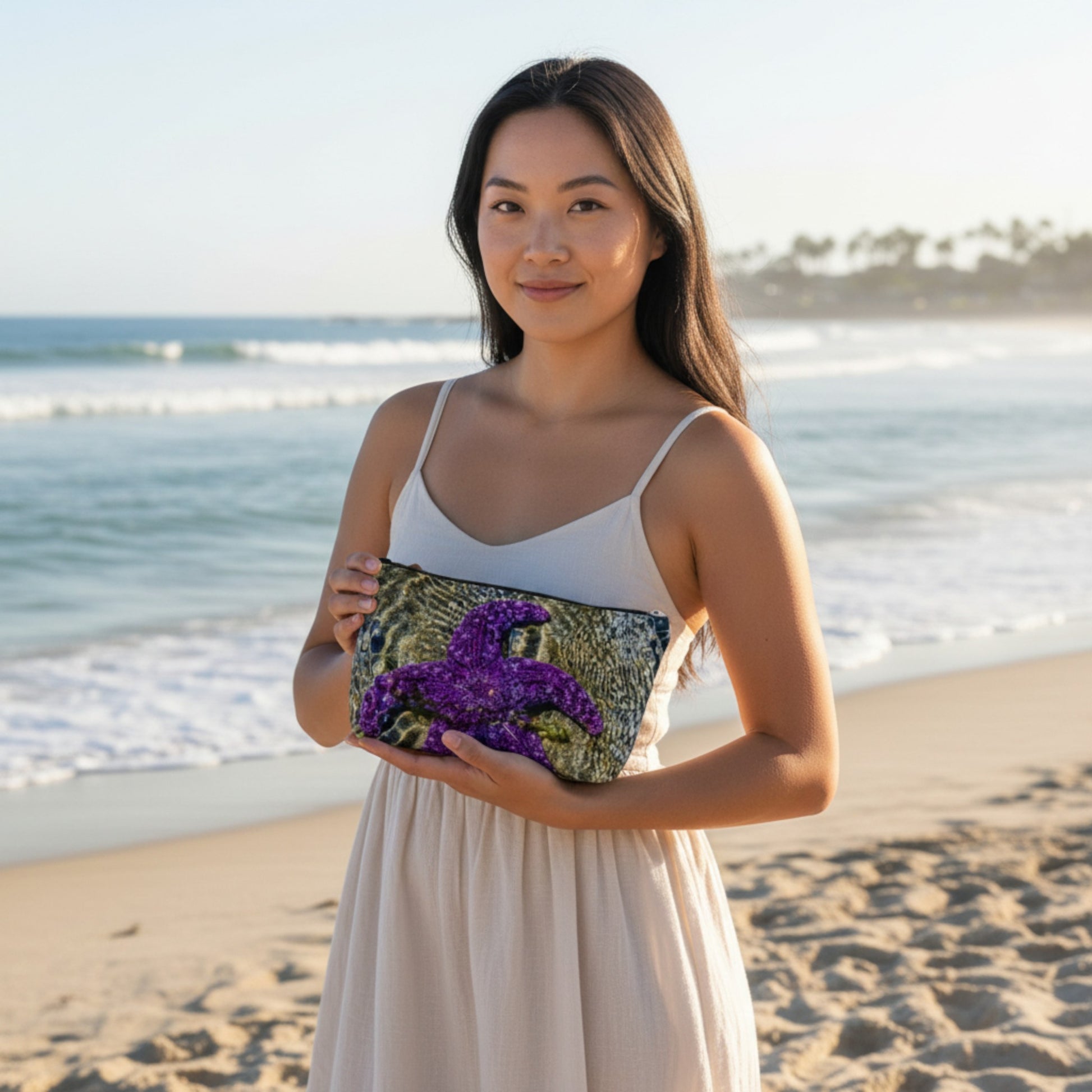 Discover the endless possibilities of the Amazing Starfish Makeup Travel Bag! This marvelous coastal-inspired cosmetic case is the perfect companion for all your travel needs - whether you're storing makeup, loose change, your phone, art supplies, keys, or even important documents like your passport. Keep everything organized and within reach with this versatile and stylish bag, ensuring your belongings stay secure and easily accessible throughout your journey. Embrace the wonder of amazing starfish and travel in style!