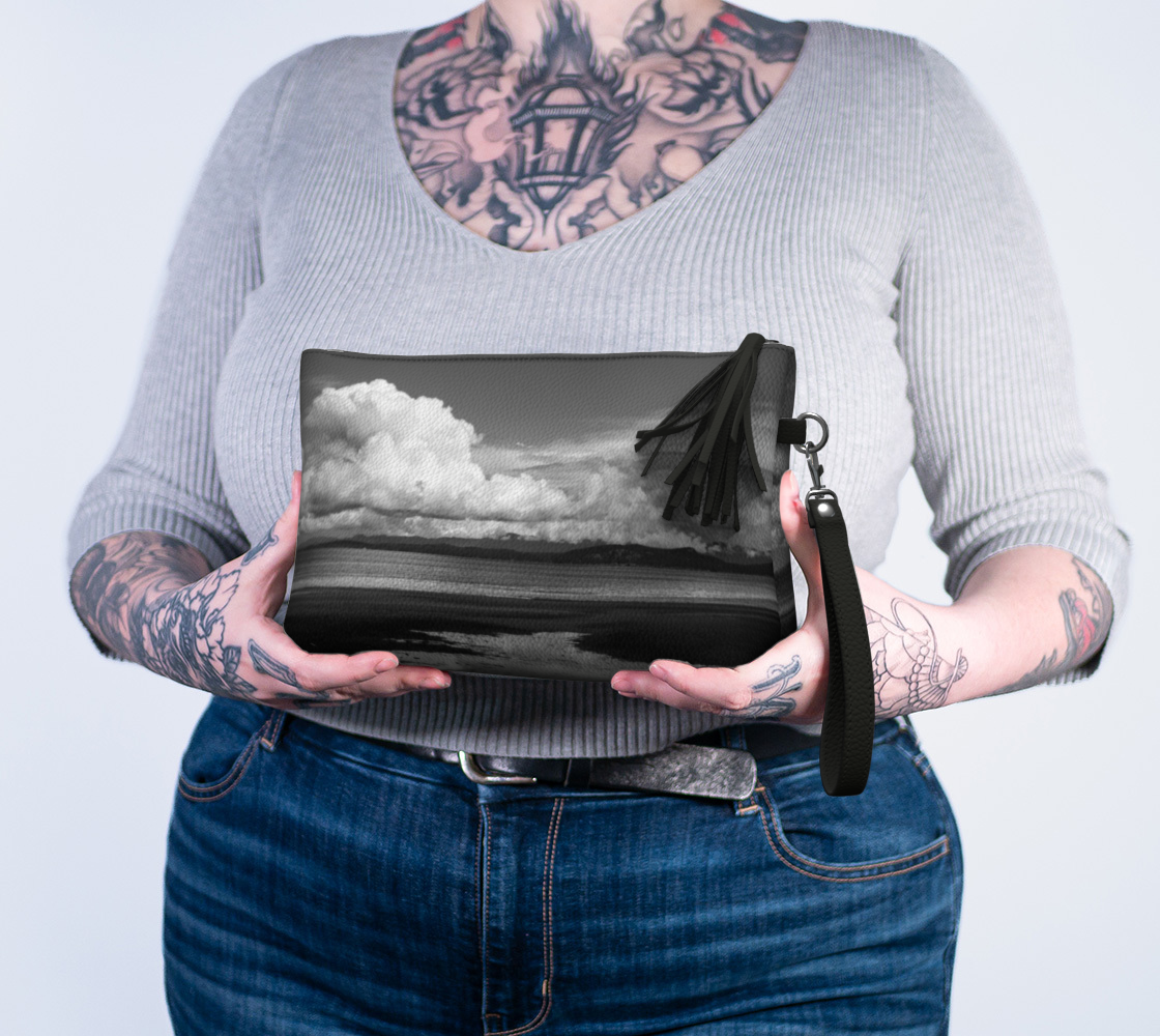 Black or White for your finishing details, including zipper, tassel, tabs, wristlet strap, and hardware for a personalized touch.