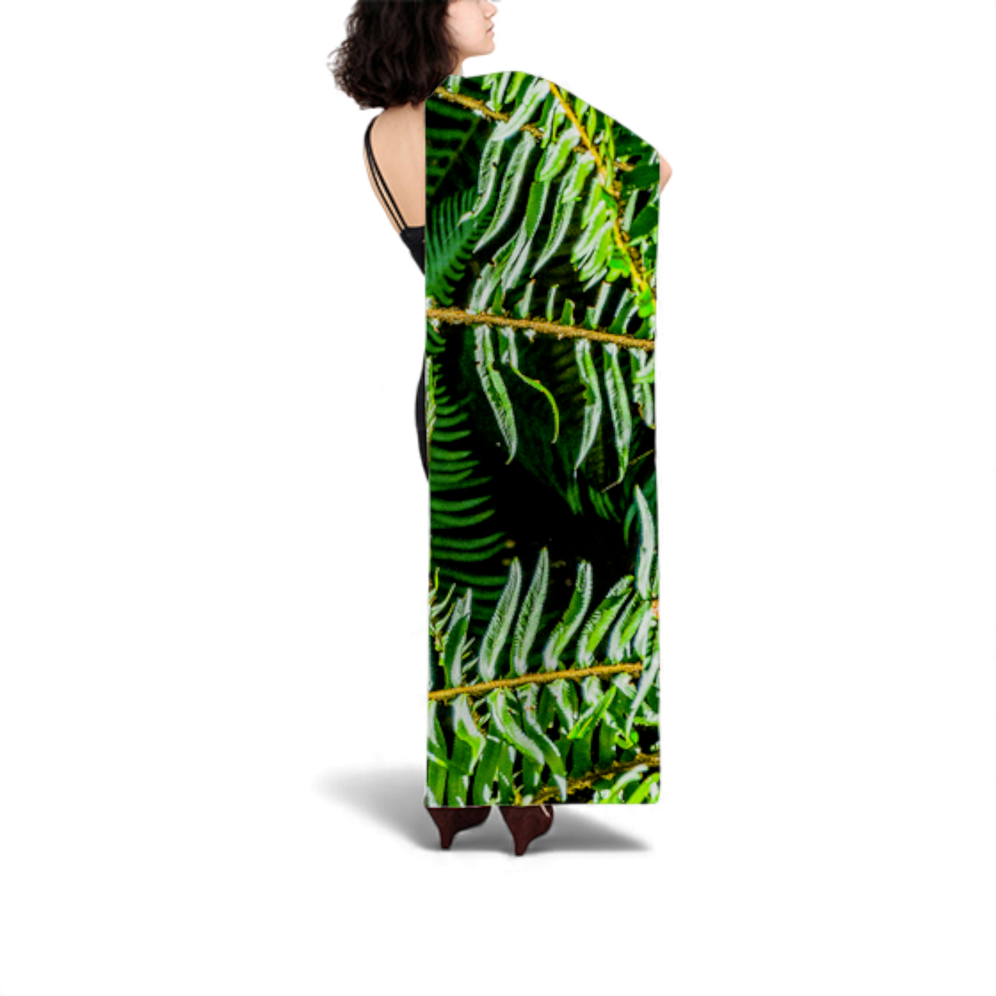 Wear this Rainforest long scarf as a stylish accessory, wrap it around your head, or display it as a unique wall hanging for your home.