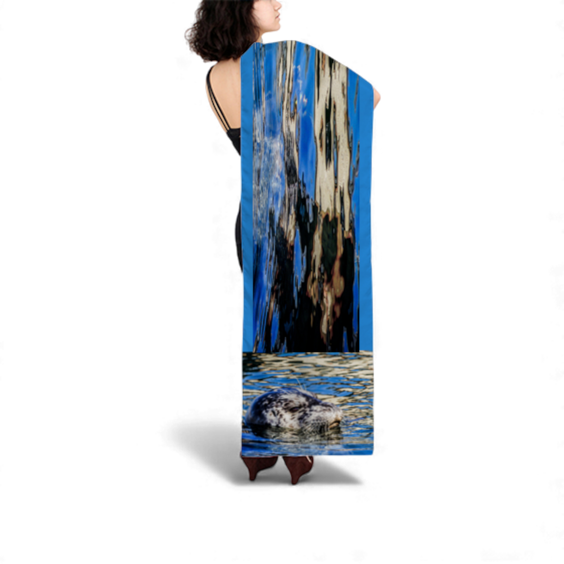 Wear this Seal Of Blue long scarf as a stylish accessory, wrap it around your head, or display it as a unique wall hanging for your home.